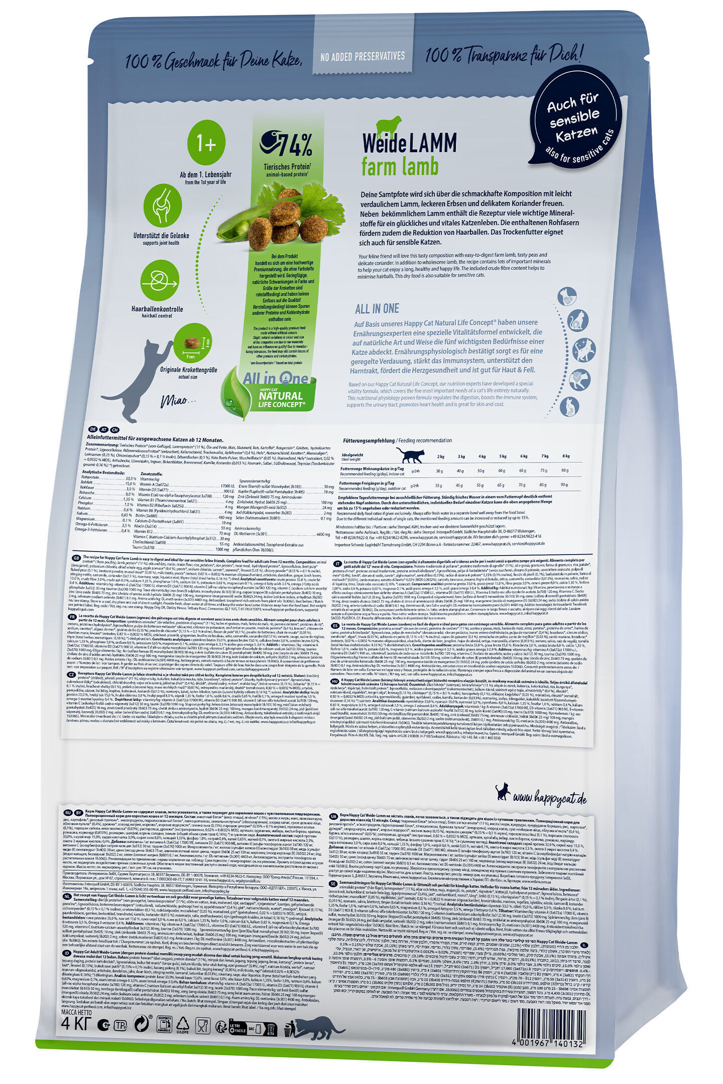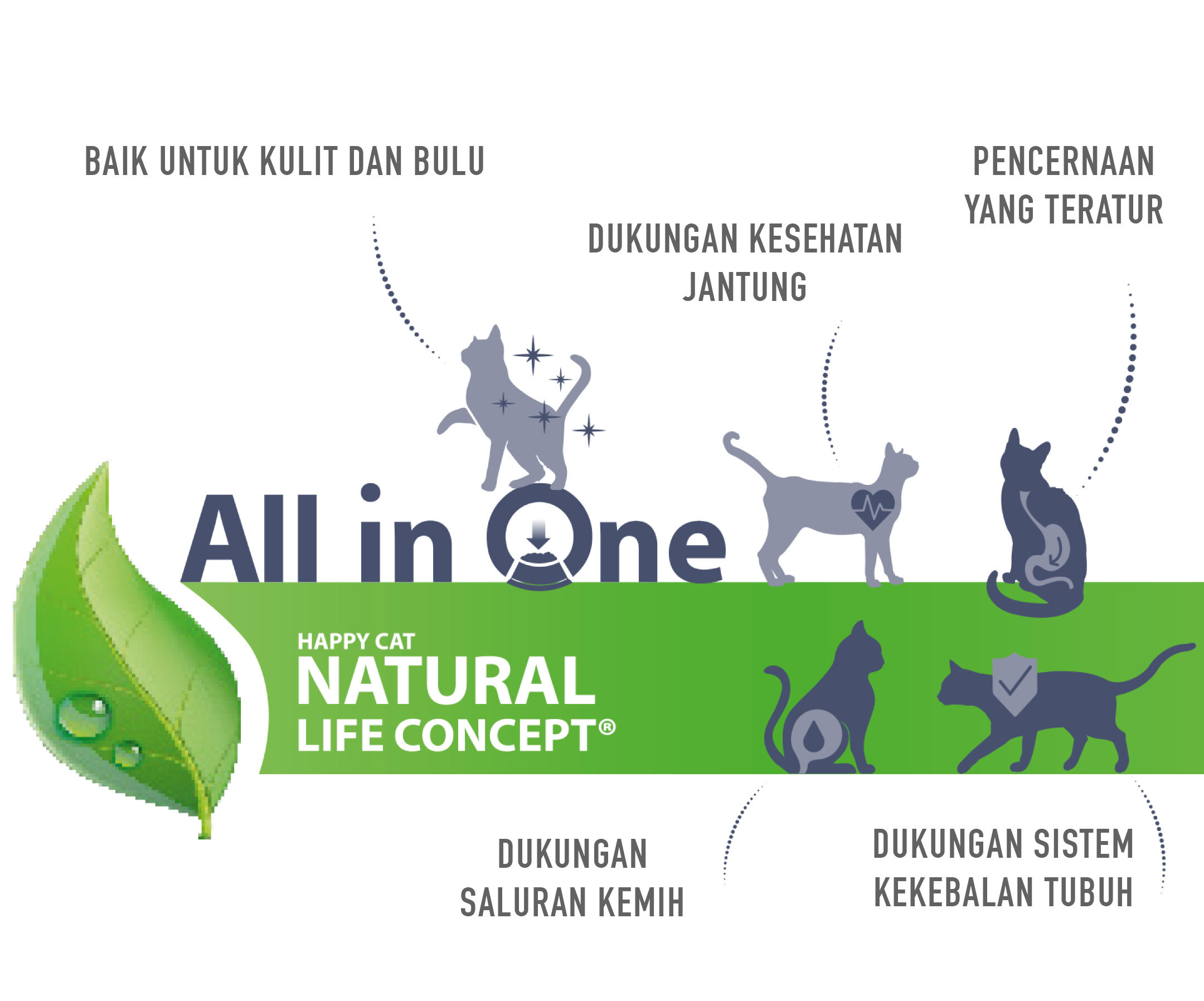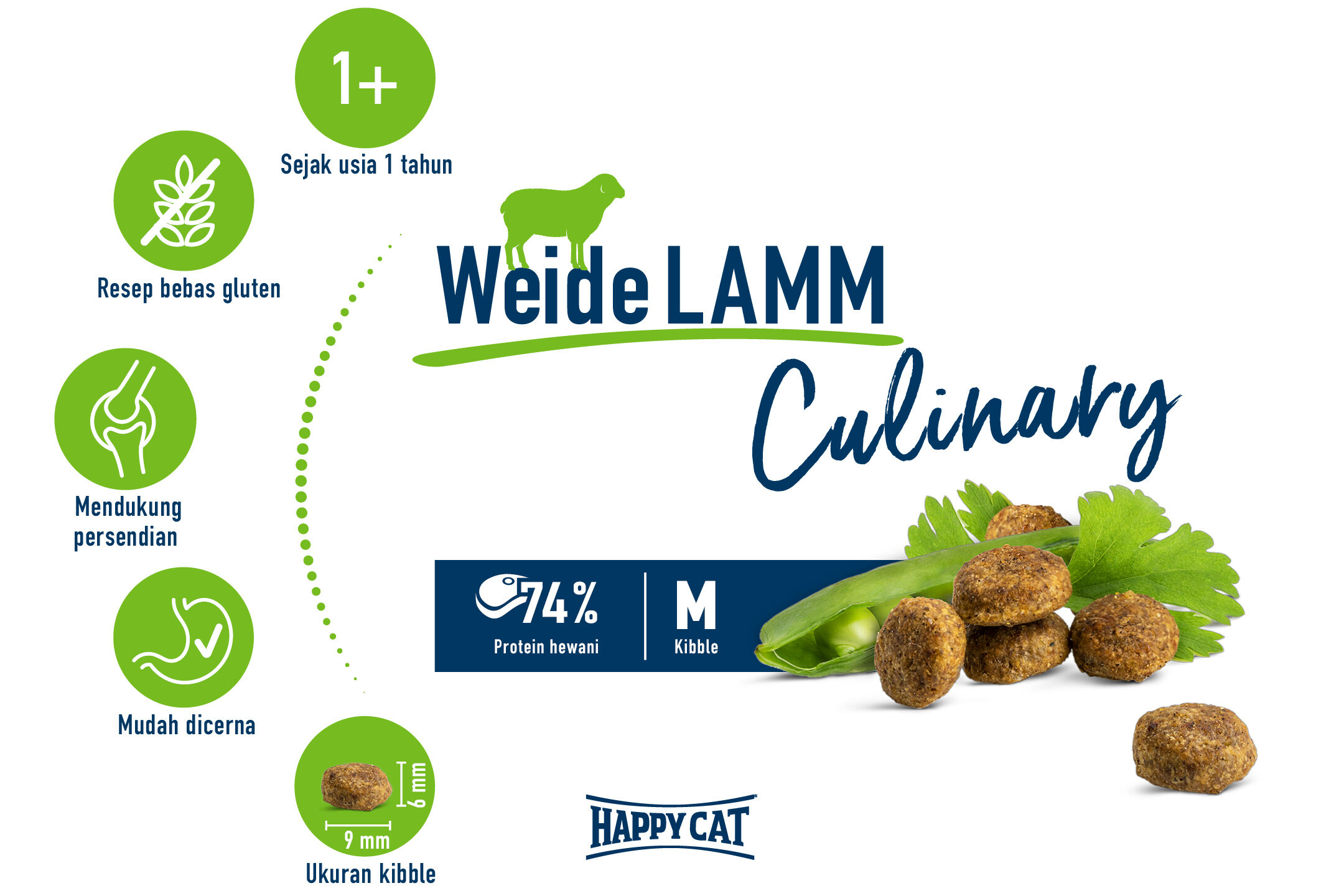 Kami menyiapkan makanan kering Happy Cat bermutu tinggi dari bahan-bahan berkualitas tinggi, menggunakan proses pembuatan yang sangat berhati-hati. All in One Concept pada Happy Cat terbukti secara nutrisi, dengan bahan aktif dalam formula yang mendukung lima aspek terpenting kesehatan kucing. Formulanya meningkatkan sistem kekebalan tubuh, mendukung kesehatan jantung dan meningkatkan fungsi saluran kemih dan pencernaan. Asam lemak omega 3 dan 6 alami dalam Culinary Adult Farm Lamb mendukung kesehatan kulit dan bulu yang berkilau.