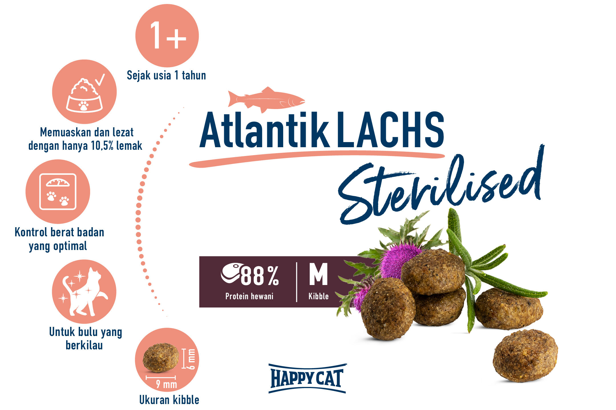 Manjakan kucing Anda dengan salmon Atlantik yang mudah dicerna, milk thistle, dan rosemary yang berkualitas. Formulasi yang lezat dan memuaskan telah dikembangkan secara khusus untuk kucing yang dikebiri dan hanya mengandung 10,5% lemak. Proporsi serat alami yang tinggi juga membantu meminimalkan hair ball.